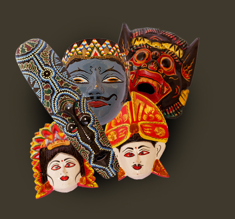 As máscaras da Indonésia são muito populares para os povos da região, em praticamente todas as residências de tradição hindu, elas são utilizadas, não apenas como objeto de decoração, mas também, como amuletos de proteção.