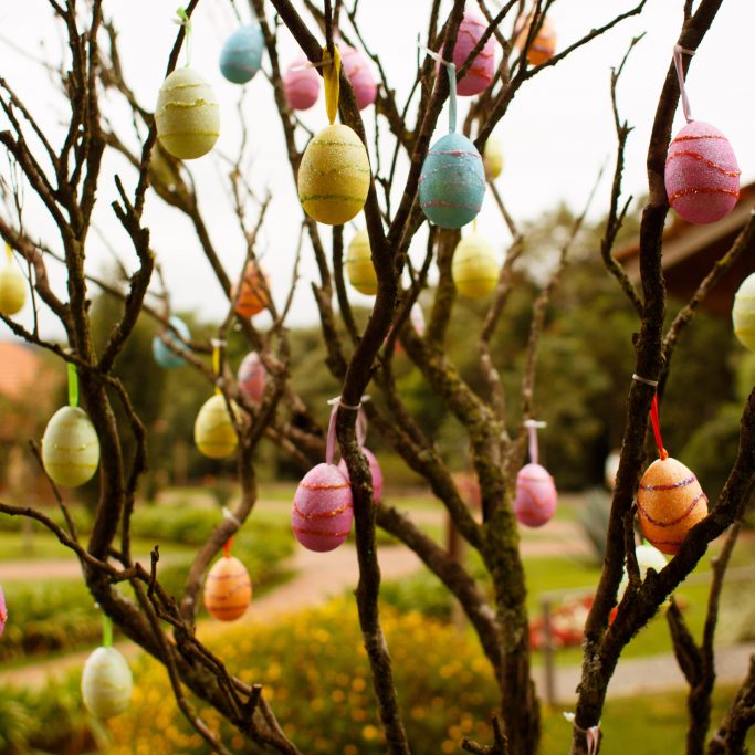 O ovo, símbolo do cristianismo e renascimento, é colorido manualmente pela comunidade para comemorar a Ressurreição de Jesus Cristo.